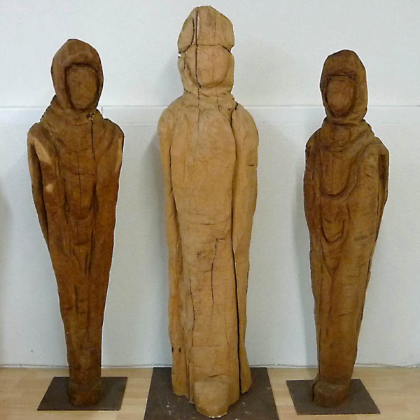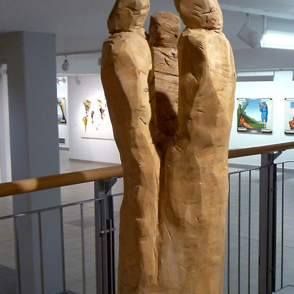 Schon 2004 sind erste Arbeiten aus Holz, Eisen, Edelstahl, Keramik und Bronzen entstanden. Inspiriert von diesen Arbeiten fing ich 2008 an die ersten großen Holzskulpturen, die ausschließlich mit der Kettensäge angefertigt worden sind, zu bearbeiten. Die Figuration in der Malerei und den Radierungen fand so zu einer neuen Möglichkeit, die es mir erlaubt hat, in eine weitere Dreidimensionalität vorzustoßen. Somit konnte ich meiner künstlerischen Arbeit noch mehr Ausdruckskraft verleihen.